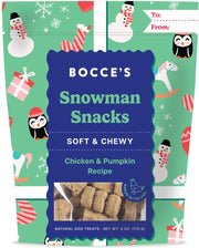 - Treat your furry friend to the ultimate snowy day delight with Bocce’s Bakery Snowman Snacks Chicken & Pumpkin Limited Ingredient Soft & Chewy Dog Treats.