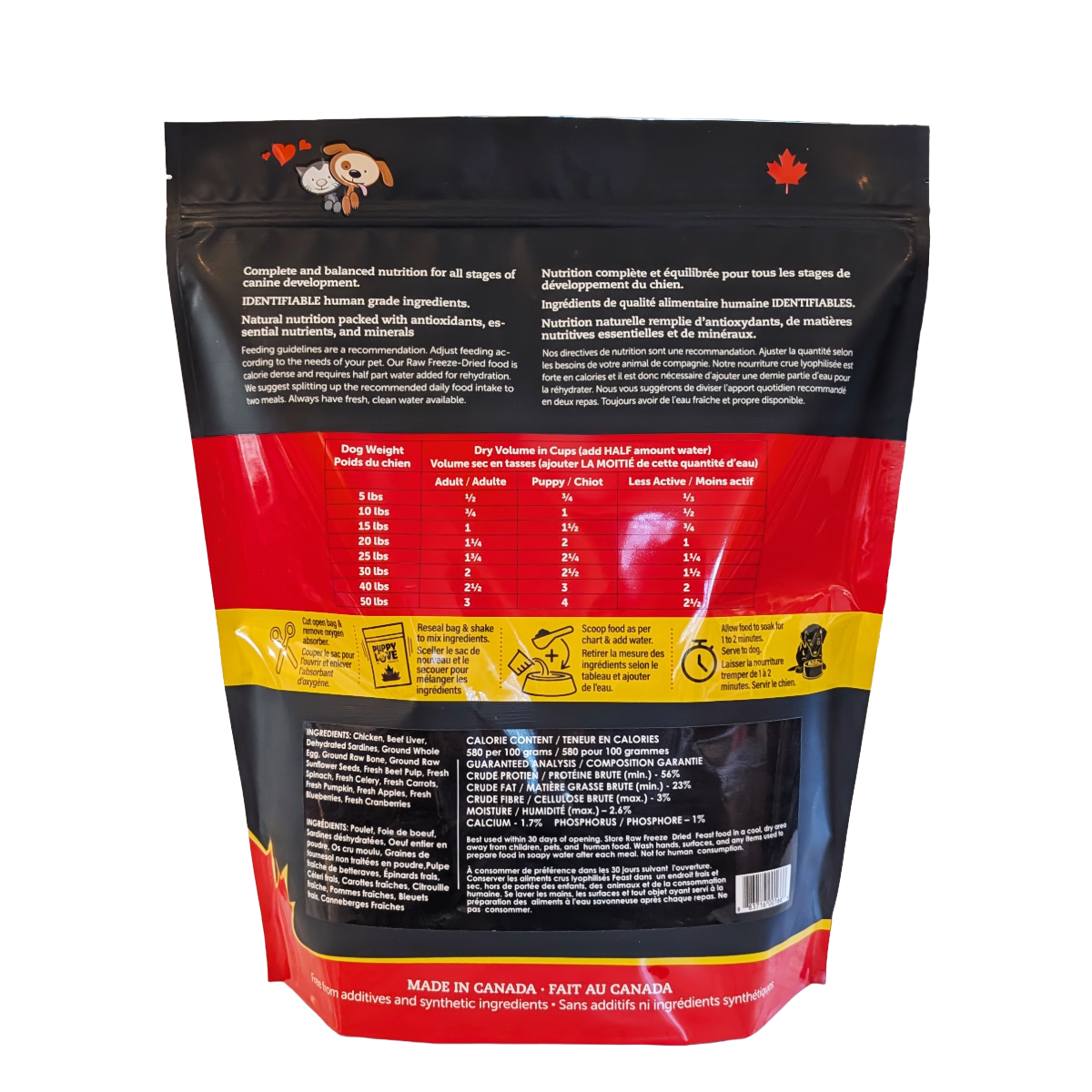 Indulge your pup with Puppy Love's Raw Freeze Dried Feast - Chicken Cuisine! Made with ingredients that include chicken, beef liver, sardines, and wholesome fruits and veggies, this healthy dog food is a rich source of vitamins and minerals. Created by our Certified Canine Nutritionist, it's a delicious and nutritious choice you can see in every bite!