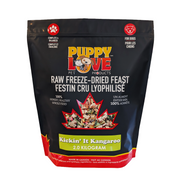Treat your pup to the nutritious taste of Kickin' It Kangaroo! This novel protein is packed with omega 3 fatty acids, vitamins, and minerals. Kangaroo is an allergy-friendly, complete and balanced recipe for all stages of development. Show your puppy some love with Puppy Love Raw Freeze Dried Feasts!
