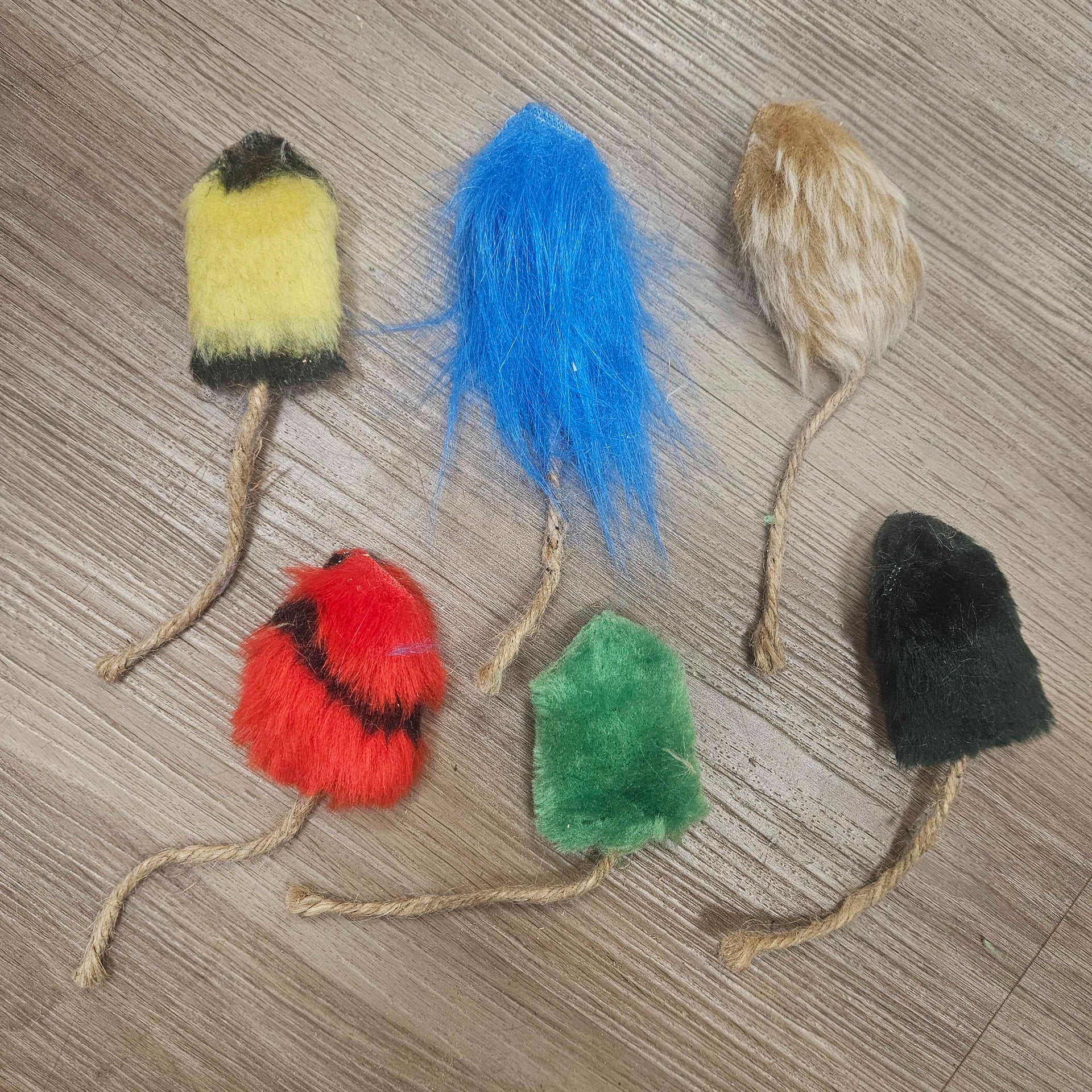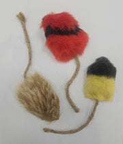 Locally handmade toys stitched into the shape of adorable little mice and crafted from a soft, fuzzy material your kitty will love to sink their paws into. Each mouse is generously stuffed with fragrant honeysuckle wood that cats can’t resist. The natural scent drives kitties wild with excitement. They're perfect for batting, pouncing, and snuggling.