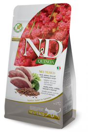 Ingredients: duck, dehydrated duck, sweet potatoes, dried beet pulp, dehydrated herring, quinoa seed, dried whole eggs, chicken fat, pea fiber, linseed, herring oil, dried broccoli, dried asparagus, fructooligosaccharide, yeast extract, brewers dried yeast, psyllium seed husk, calcium sulfate dihydrate, potassium chloride,