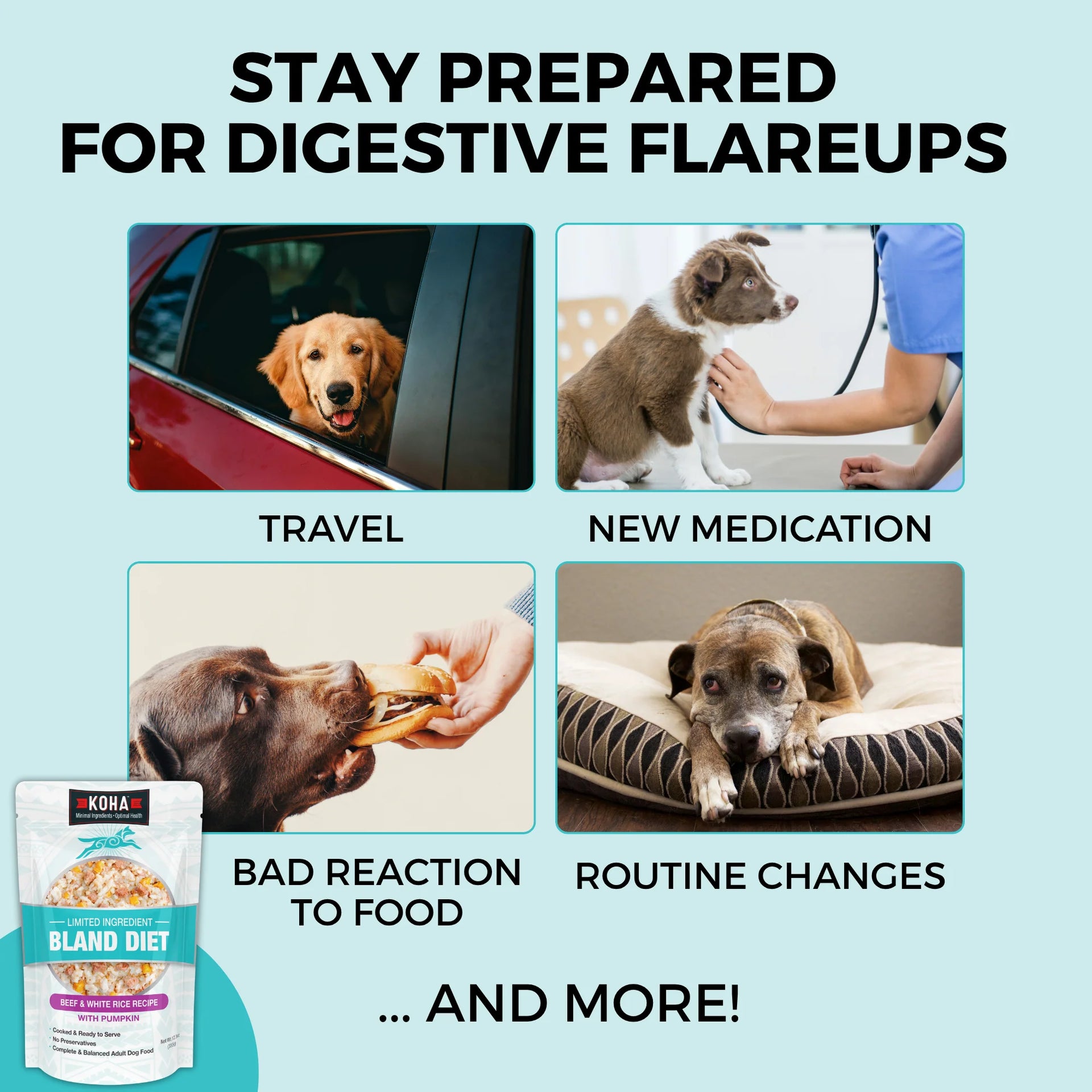 Whether your dog suffers from chronic digestive issues or is experiencing a digestive flare-up, KOHA Bland Diet for dogs can help get their tummy back on track!
