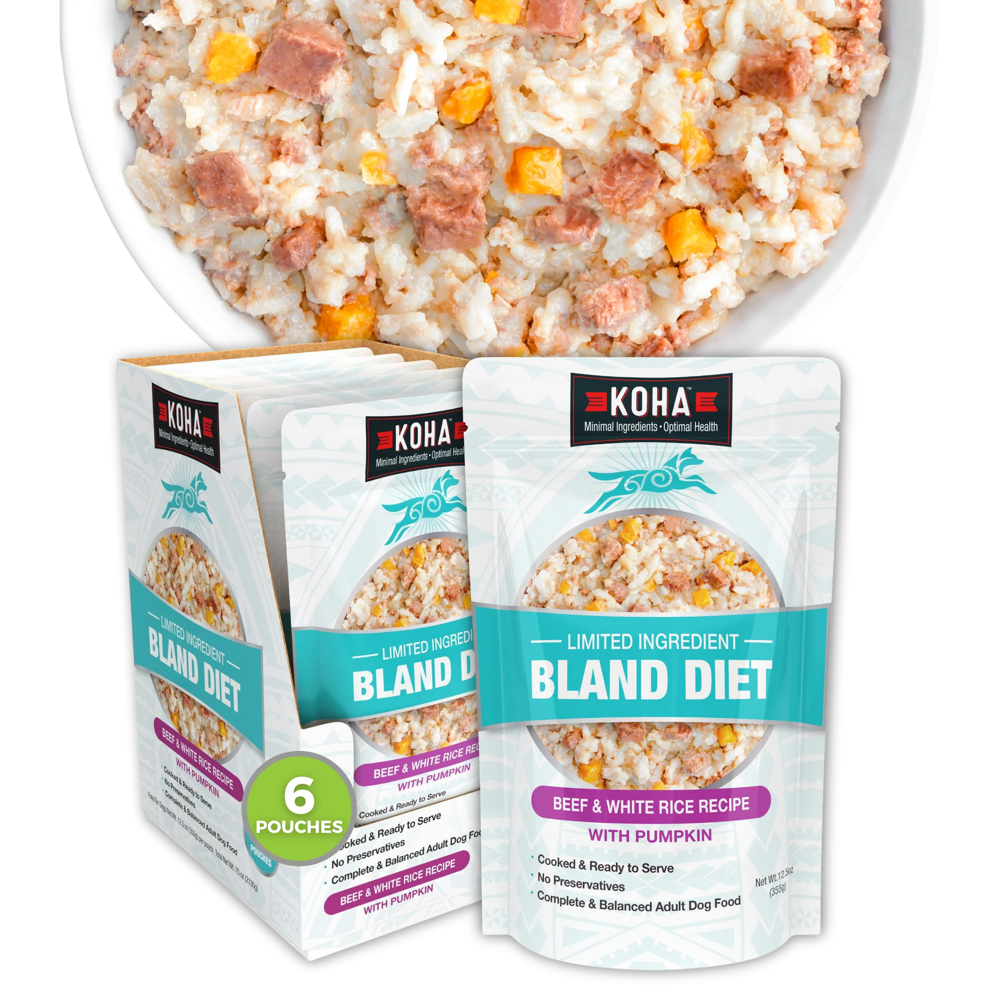 KOHA Bland Diet for dogs is ideal for dogs with upset stomach, loose stool, or diarrhea. This gently formulated limited ingredient dog food recipe has just one protein source for easy digestion. It also includes white rice and pumpkin to support healthy stools and regularity.